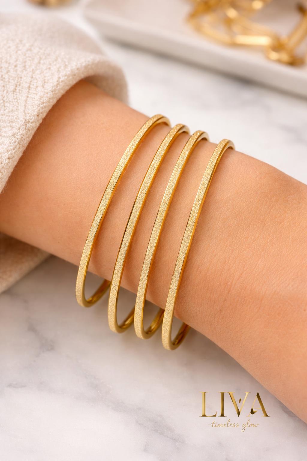 Simli yüzeyiyle ışığı zarif şekilde yansıtan Ajda Bilezik, bilekte ince ama etkileyici bir ışıltı oluşturur. Abartıdan uzak tasarımı sayesinde hem günlük kullanıma hem de özel anlara kolayca uyum sağlar.