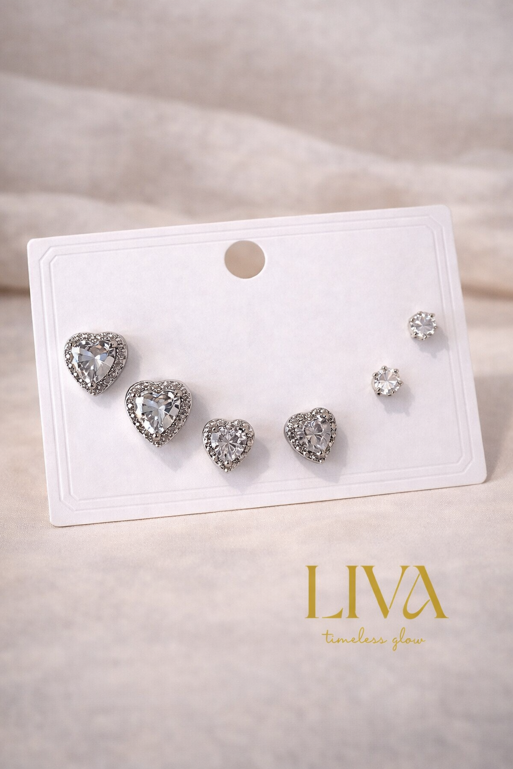 Kalp formunda tasarlanan bu küpe seti, ışıltılı taş detaylarıyla feminen ve şık bir görünüm sunar. Günlük kullanımda sade, özel günlerde ise zarif bir tamamlayıcı olarak tercih edilebilir.